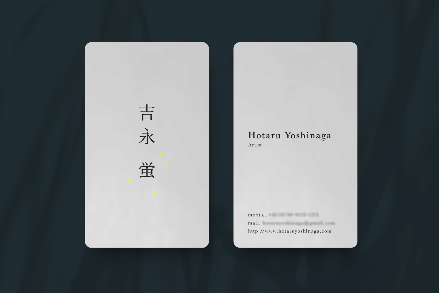 油絵作家、吉永蛍さんの名刺をデザインさせていただきました。静かな中にも真の強いお人柄の表現と、可愛らしいお名前から、蛍のイメージをシンプルなデザインのアクセントにしています。
